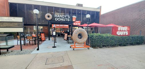 Large shopping center in a bustling business district featuring eateries, services & many stores.